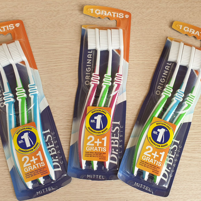 - Bàn chải đánh răng Dr.Best sẽ giúp bạn tiết kiệm hơn rất nhiều khi mua 1 set được những 03 chiếc cho cả nhà!